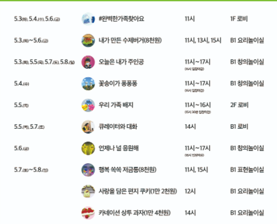 어린이날 주간, 온 가족이 함께 다양한 체험 활동을 즐겨보시기 바랍니다.
