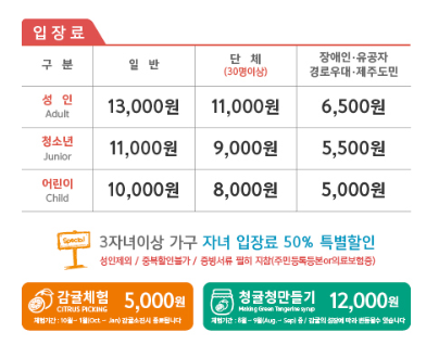 입장료가 비싸다고 생각하실 수 도 있지만 제주도라..어느정도 이해는 해 주셔야 할 것 같아요.