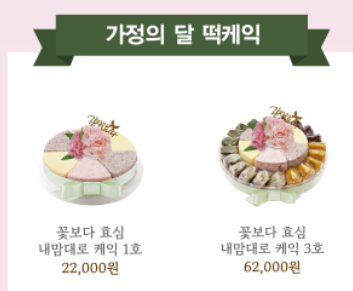 어버이날 선물도 바로 한방에 해결 가능하게 준비 하실 수 있는데요. 5월은 이런저런일로 바빠서 어버이날 준비를 못하고 당일에 할 수 잇을텐데요. 빚은 떡집의 어버이날 행사 이벤트를 구경해 보세요.
