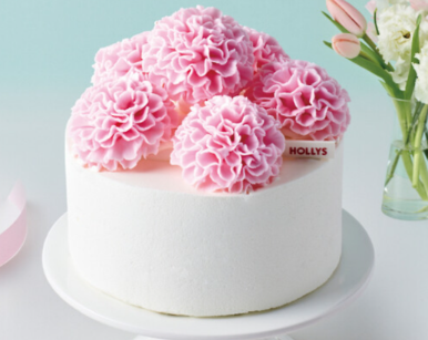 커피전문점 할리스에서는 어버이날을 맞아 카네이션 케이크를 준비했는데요. 핑크 카네이션이 듬뿍 올라간 모양 케익입니다. 부드러운 생크림과 딸기가 샌딩된 케이크에 슈가 플라워로 카네이