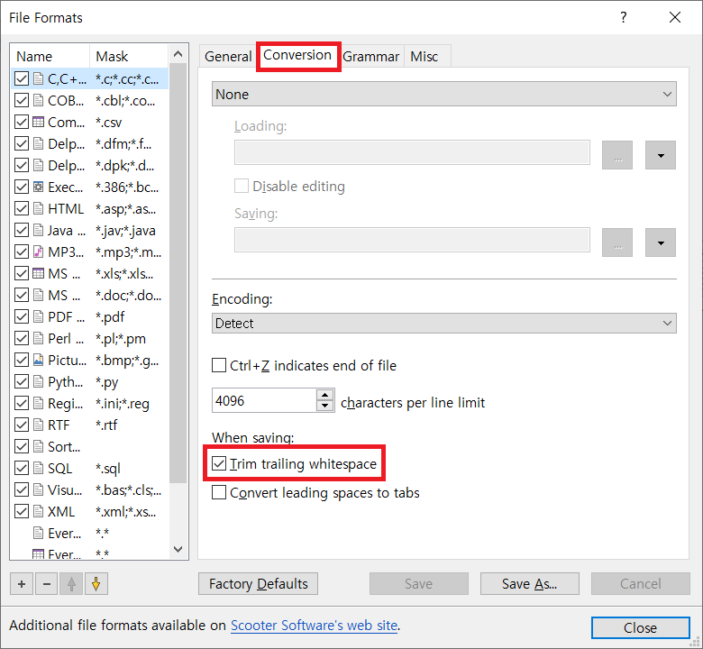 참고로 Beyond Compare 프로그램으로 저장 시에 자동으로 불필요한 공백 문자를 제거하는 방법도 간략하게 설명드립니다. 자세한 내용은 Beyond Compare로 저장 시에 자동으로 불필요한 공백 문자를 제거하는 기능도 있으므로 참조하시기 바랍니다.