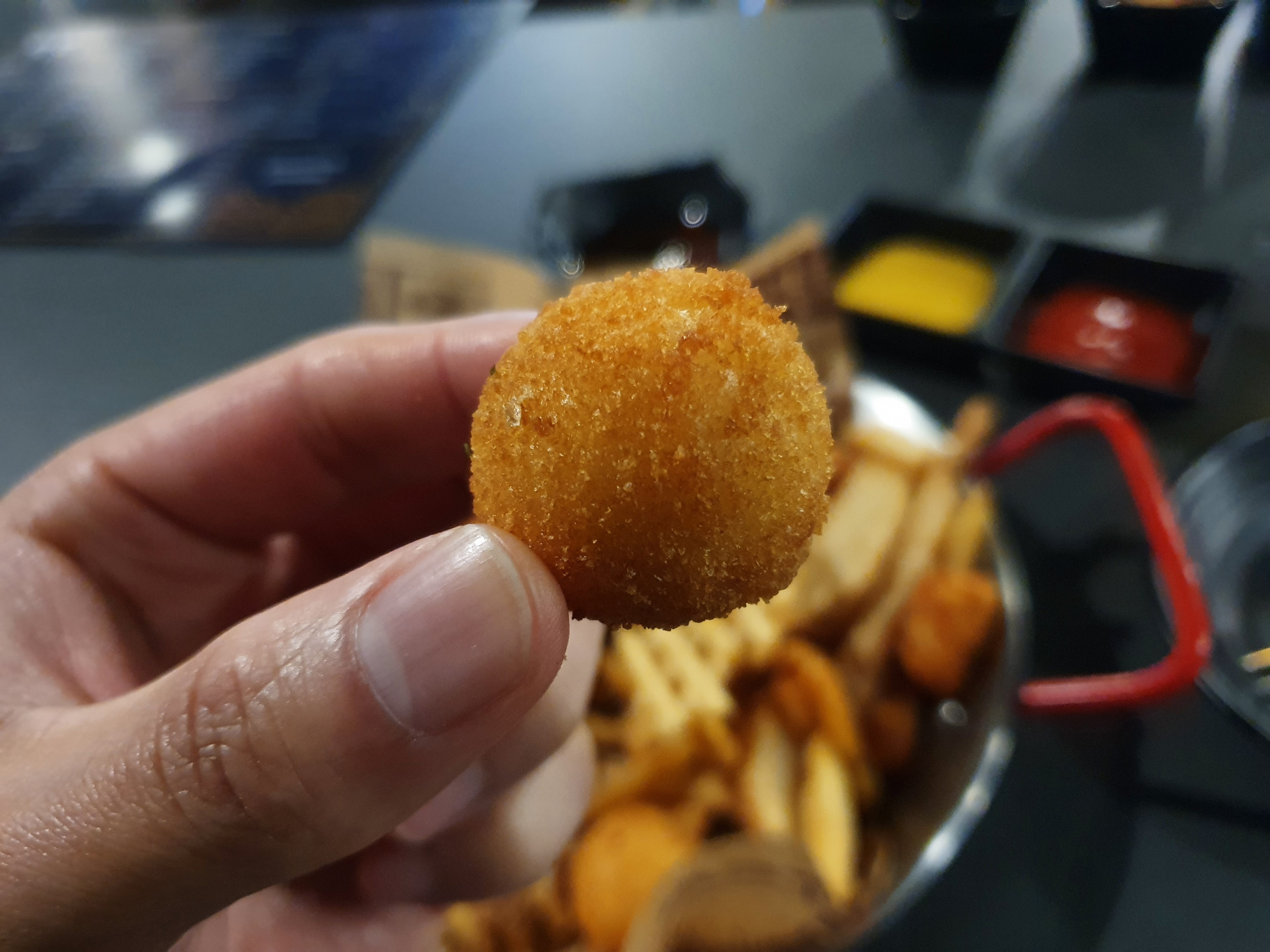 감자튀김에는 치즈볼도 들어가 있습니다.