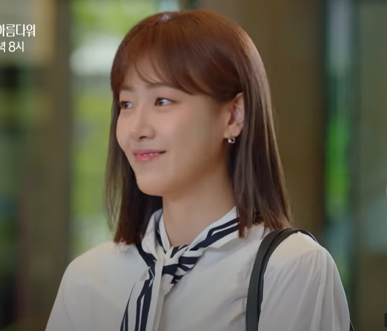 22. 6. 19. 현재는 아름다워 24회 최예빈 나유나 줄무늬 스트라이프 카라 티셔츠 옷 패션 착장 협찬 브랜드 어디제품? 정보 드라마 패션 연예인 의상 셀럽 코디 행텐 셔츠칼라 스트라이프 패터 티셔