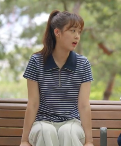 22. 6. 19. 현재는 아름다워 24회 최예빈 나유나 줄무늬 스트라이프 카라 티셔츠 옷 패션 착장 협찬 브랜드 어디제품? 정보 드라마 패션 연예인 의상 셀럽 코디 행텐 셔츠칼라 스트라이프 패터 티셔
