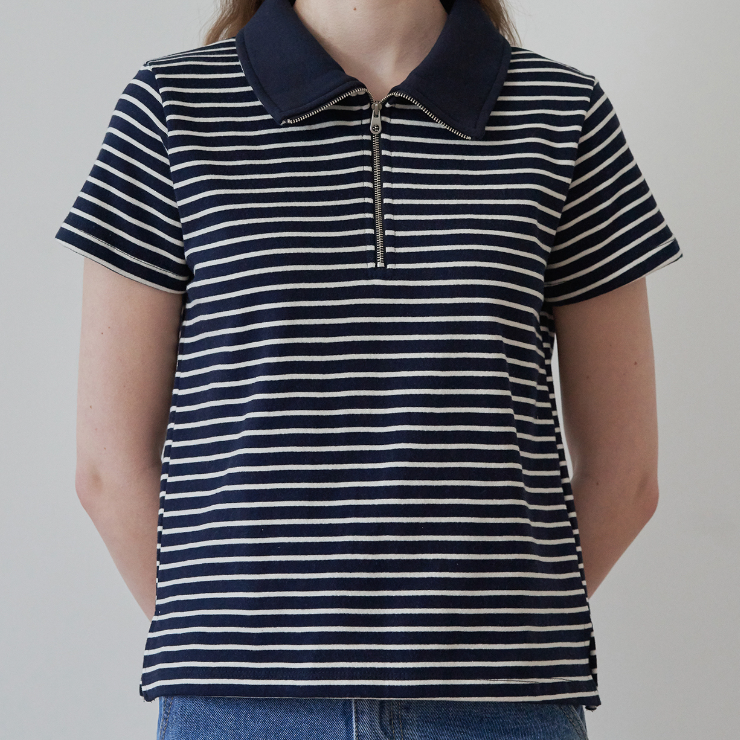 유라고의 집업 스트라이프 티셔츠입니다. 가격은 5만원대 제품이에요.