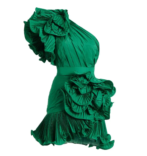 Ruffled Taffeta Asymmetric Mini Dress