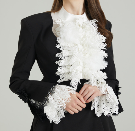 드라마 이브 7회 7화 서예지 오스 하늘색 크롭 자켓과 치마 옷 의상 패션 착장 협찬 브랜드 어디제품? 최고급 실크와 울 블렌드 소재로 제작한 크랍 자켓입니다.바디에 따라서 완벽한 입체 재단