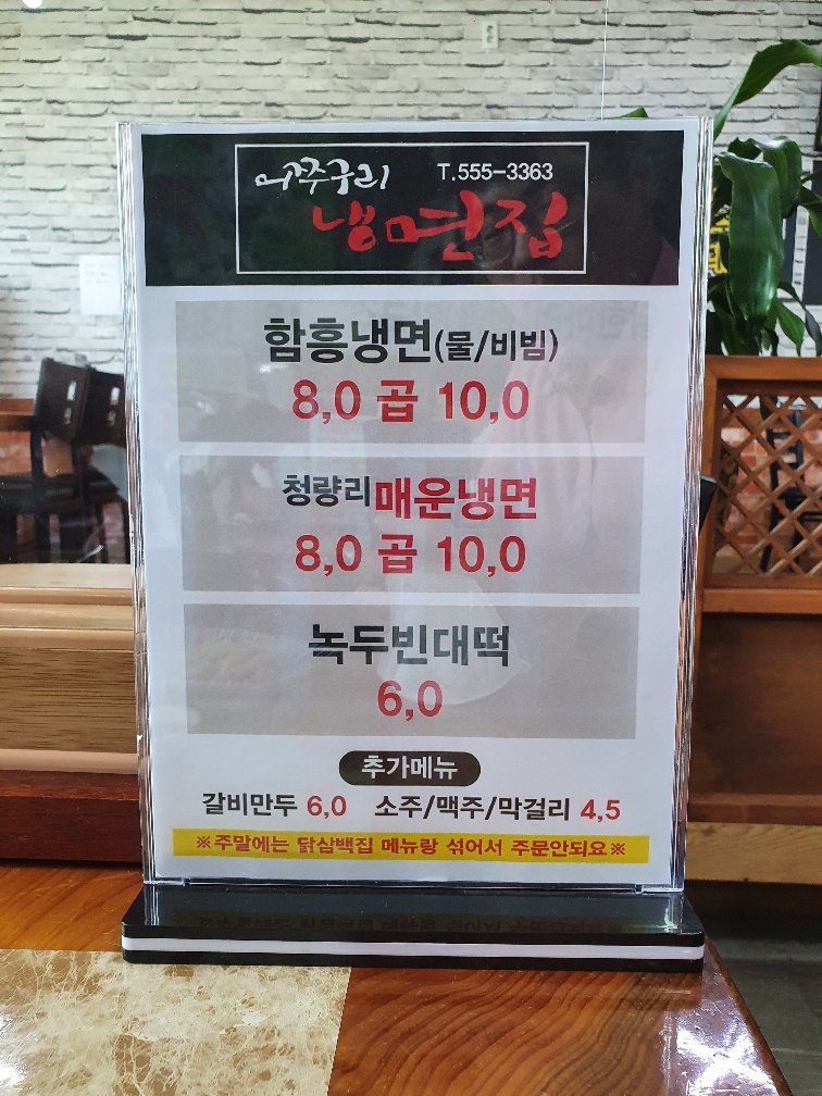 <어쭈구리냉면집>은 <닭삼백집>이랑 같은 가게입니다. 상호는 다르지만 입구가 동일해서, 메뉴 선택의 폭이 넓습니다. 냉면도 먹을 수 있고 닭곰탕도 먹을 수 있어서 참 만족스러웠네요.