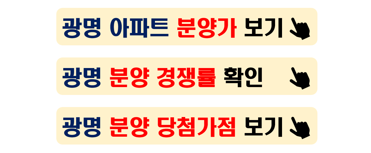 - 지금까지 광명의 분양을 기다리고 계신 분들이 많으실 텐데요. 광명은 분양이 많아서 시간이 지날수록 당첨자들이 빠져나가면서 당첨가점과 경쟁률이 낮아지면서 당첨확률이 높아질 수 있습니다. 끝까지 포기하지 마시고 할 수 있는 분양에는 전략적으로 집어넣어서 꼭 당첨되시기 바랍니다.