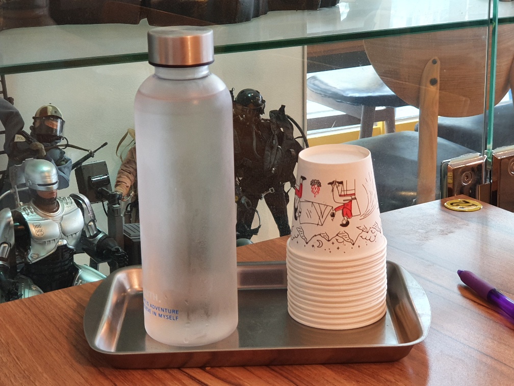 전반적으로 아주 깔끔한 느낌이 듭니다. 컵도 종이컵이라서 위생에 많이 신경 쓴 느낌이 드네요.