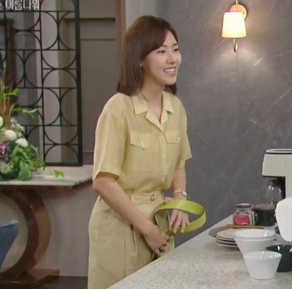 현재는 아름다워 36회 박지영 타이 블라우스+치마 현미래 엄마 진수정 연두색 옷 패션 착장 제품
