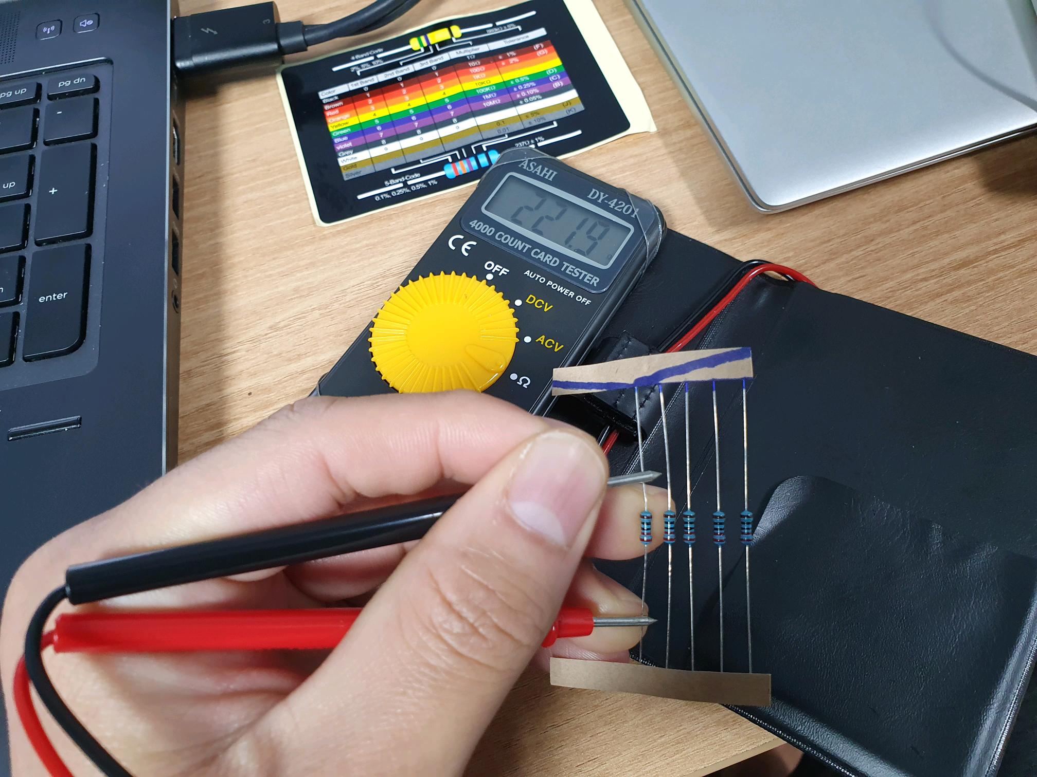 오차 범위 이내에서 220Ω으로 측정이 됩니다.