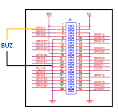 부저의 (+) 극을 GPIO 2번 채널에 연결했고, 부저의 (-) 극을 GND에 연결하였습니다.