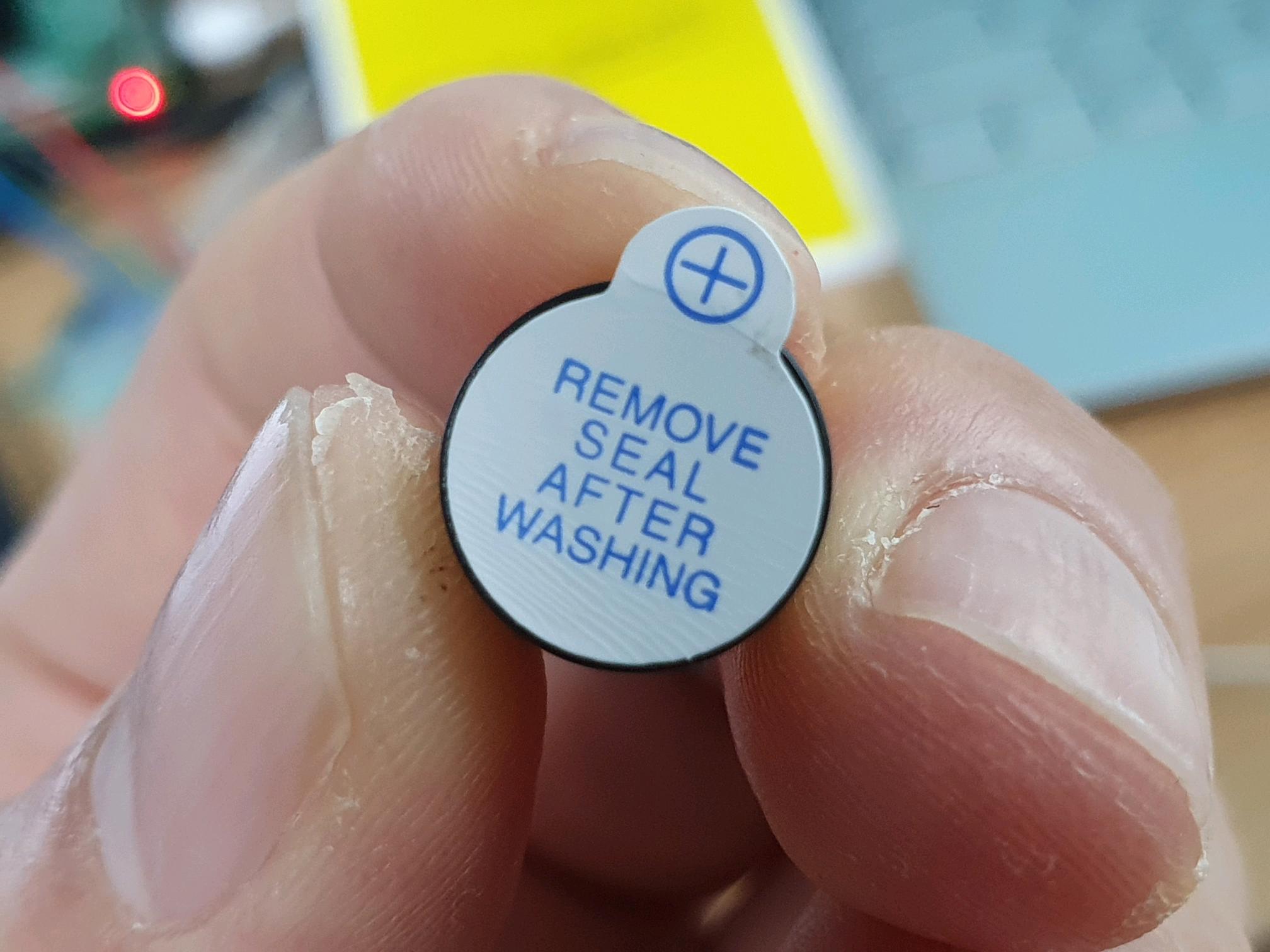 납땜 이후에 washing을 할 때 이물질이 부저 안으로 들어가는 것을 방지하기 위한 것입니다.