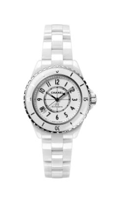 샤넬 웹사이트의 J12 워치 칼리버 12.2, 33MM, 견고한 화이트 세라믹과 스틸.