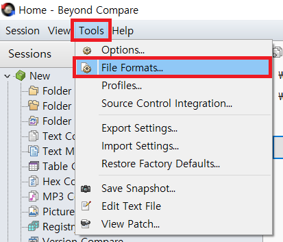 1. Tools -> File Formats 메뉴를 선택합니다.