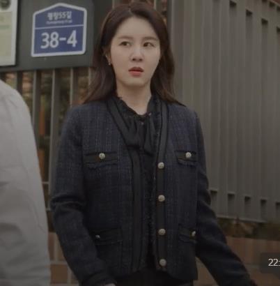 드라마 사랑의 꽈배기 패션의상 정보입니다 72회에서 강윤아역으로 나오는 손성윤님이 입은 검은색 자켓은 플라스틱 아일랜드의 제품인데요. 제품명 : 플라스틱 아일랜드 오버핏 트위드 싱글자